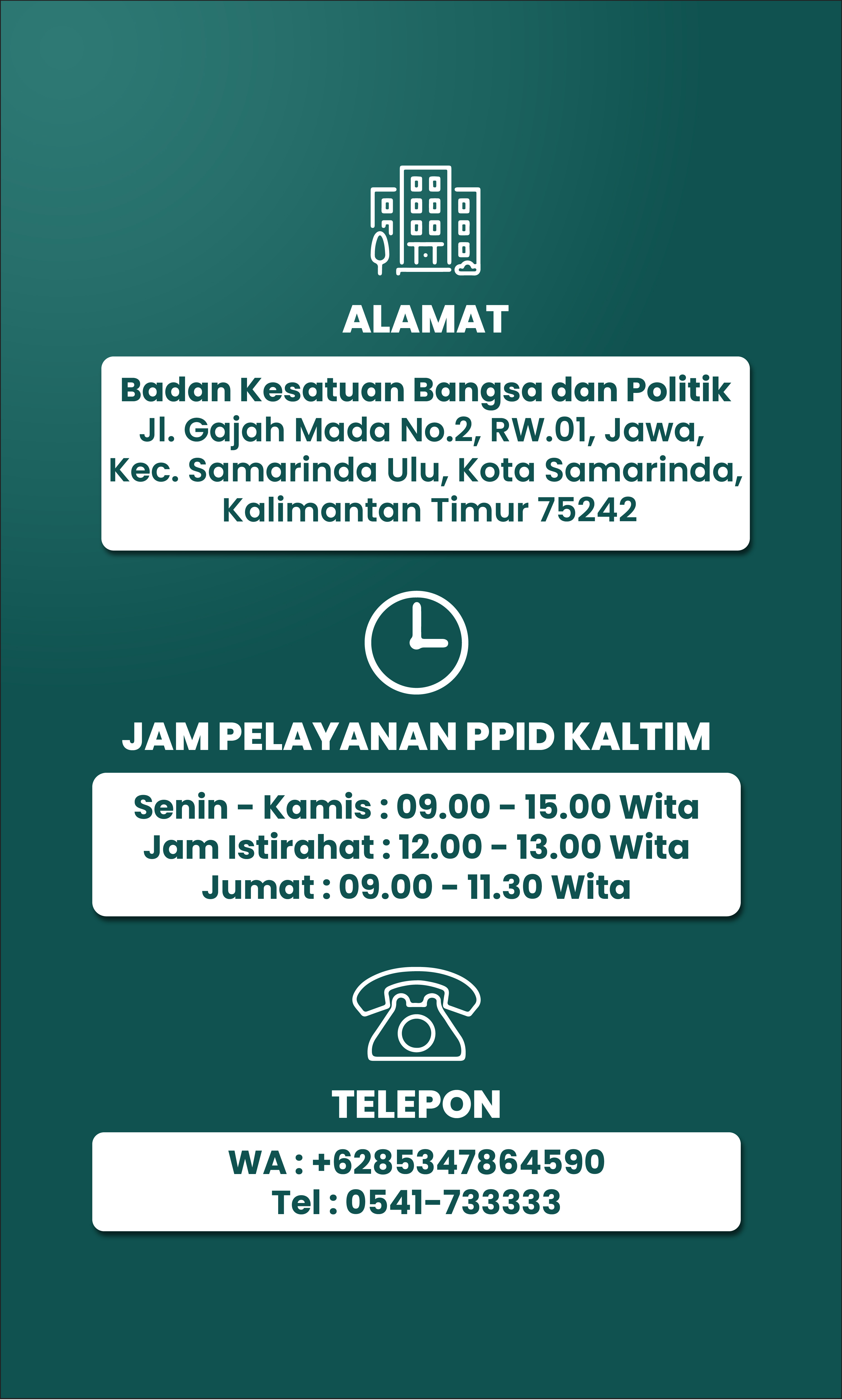Layanan ini merupakan sarana layanan online bagi pemohon informasi publik sebagai salah satu wujud pelaksanaan keterbukaan informasi publik di Provinsi Kalimantan Timur